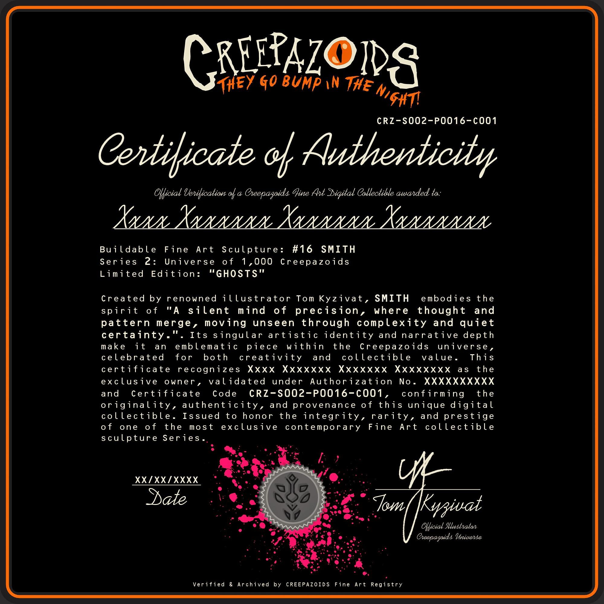 SMITH is Entity N.º 016 in an expanding system. One edition is already permanently closed. Creepazoid N.º 1000 is still unrevealed.