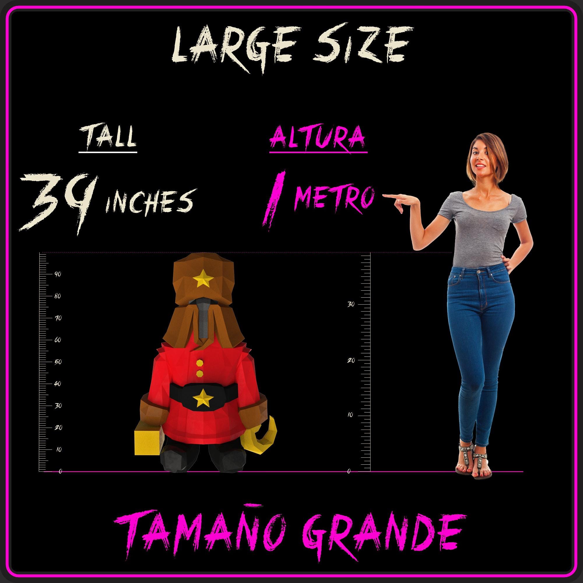 39 inches tall. Red military coat. Brown soldier's cap with gold star at center. Brown belt with gold star buckle. No visible skin. No visible face. Inside the cap: confirmed darkness. Left arm: gold hook — three surfaces altered in documented encounters, nature of alteration classified. Right arm: gold-yellow suitcase where a hand should be — never opened, no weight recorded, apparently the same suitcase in all encounters. The sleeves hang empty between shoulder and attachment. Not from damage. By design.